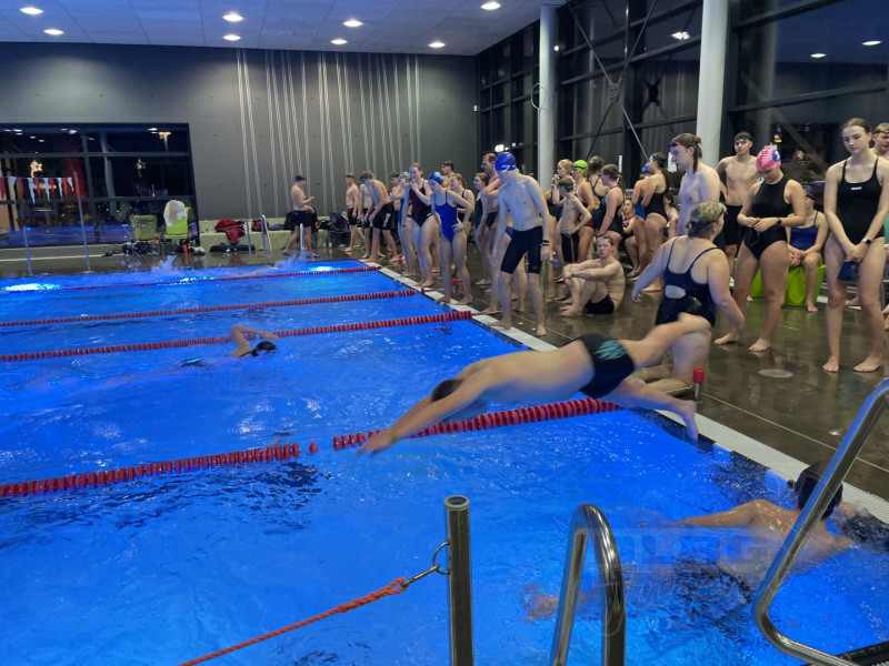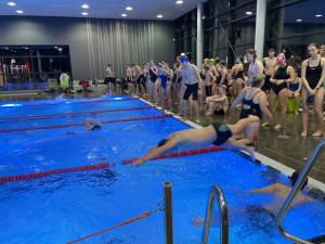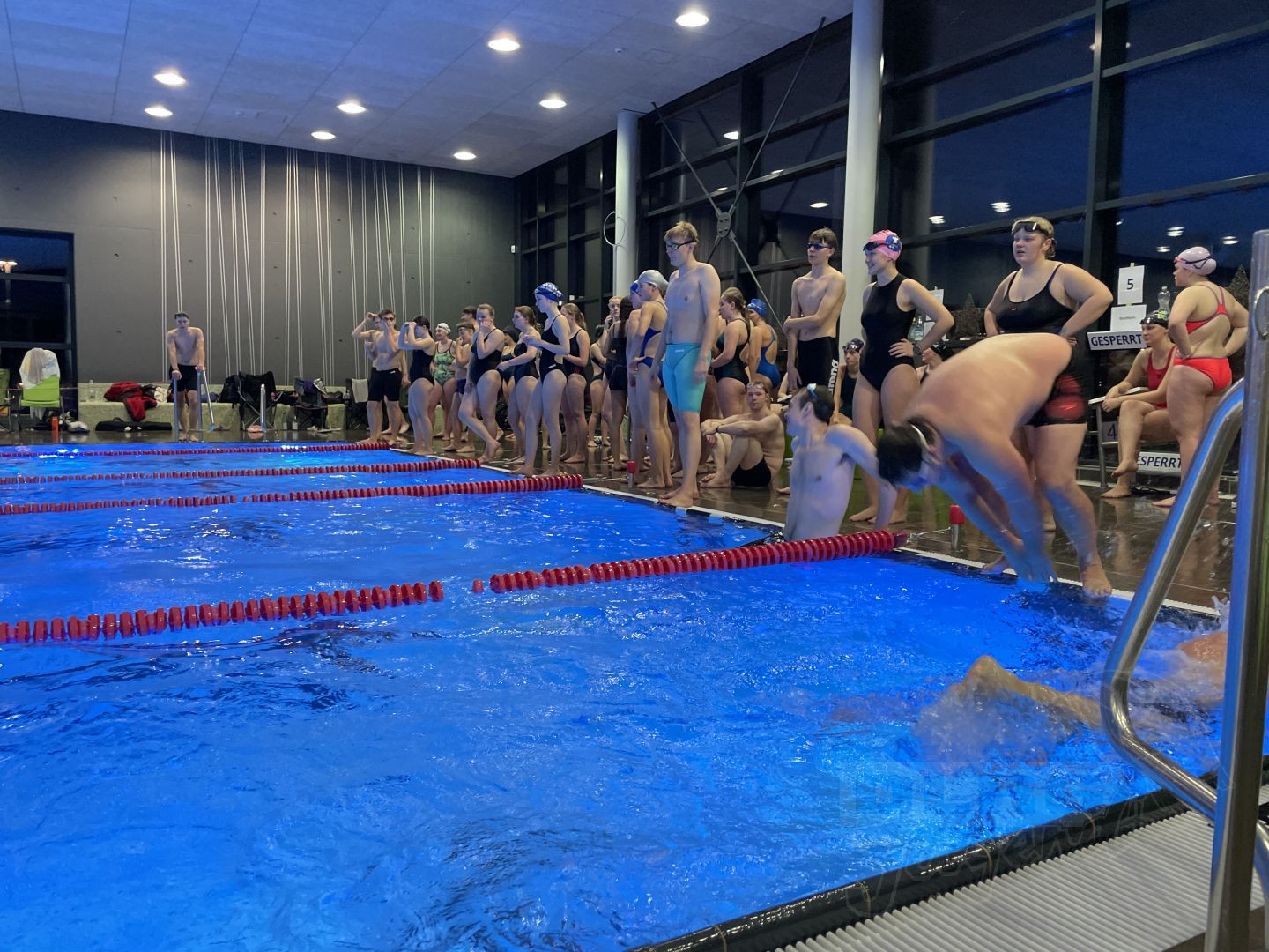 Der Wettbewerb startete am Samstag um 19:00 Uhr: Alle zehn Minuten wechselten die Schwimmerinnen und Schwimmer mit dem Ziel, innerhalb von zwölf Stunden möglichst viele Meter als Mannschaft zu sammeln. Punkt Mitternacht wurde gemeinsam der erste Advent begrüßt – mit einem Adventskranz auf Schwimmbrettern schwammen alle Teilnehmenden in die neue Adventszeit. Anschließend ging es wieder an das Sammeln weiterer Meter.