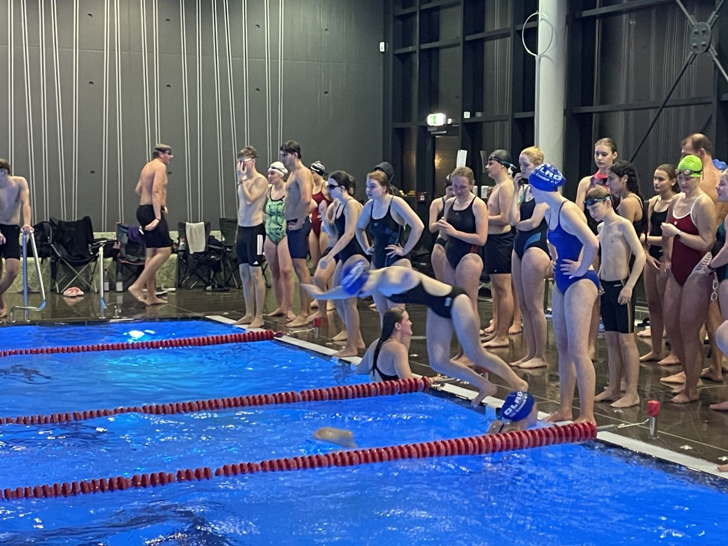 Um 6:30 Uhr begannen die üblichen halbstündigen Sprints. Dabei stellen sich die Teams am Beckenrand auf und schwimmen abwechselnd 50-Meter-Strecken, so schnell wie möglich. Sobald ein Teammitglied anschlägt, springt der oder die Nächste ins Becken. Auch in dieser halben Stunde kamen wurden nochmal ordentlich Meter gesammelt.